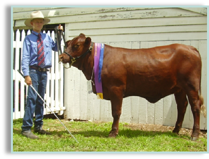 Photo taken at Greenacres, 1 Santa Gertrudis cow minding 14 calves